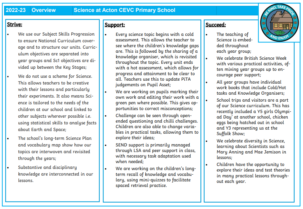 "A high-quality science education provides the foundations for understanding the world...Science has changed our lives and is vital to the world's future prosperity, and all pupils should be taught essential aspects of the knowledge, methods, processes and uses of science. “ National Curriculum 2014